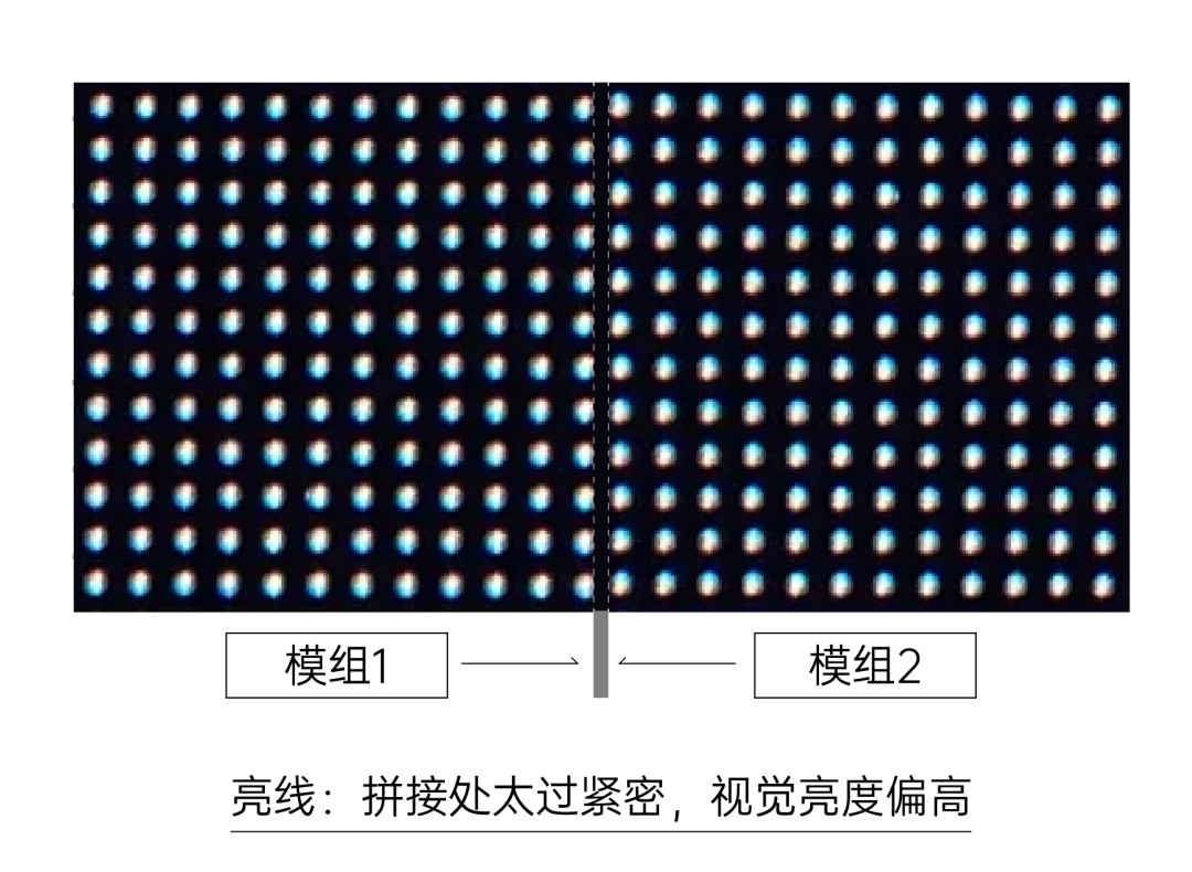 在屏體安裝時(shí),模組之間或箱體之間形成的縫隙或擠壓,會(huì)形成視覺(jué)上的亮暗線(xiàn),隨著間距變小,此現(xiàn)象愈發(fā)明顯,對(duì)LED大屏的顯示效果造成了一定的影響,顯著降低了人們的視覺(jué)體驗(yàn)。