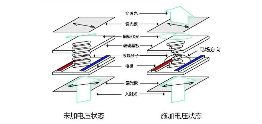 LCD拼接屏的構(gòu)造是在兩片平行的玻璃當(dāng)中放置液態(tài)的晶體,兩片玻璃中間有許多垂直和水平的細小電線,透過通電與否來控制桿狀水晶分子改變方向,將光線折射出來產(chǎn)生畫面。