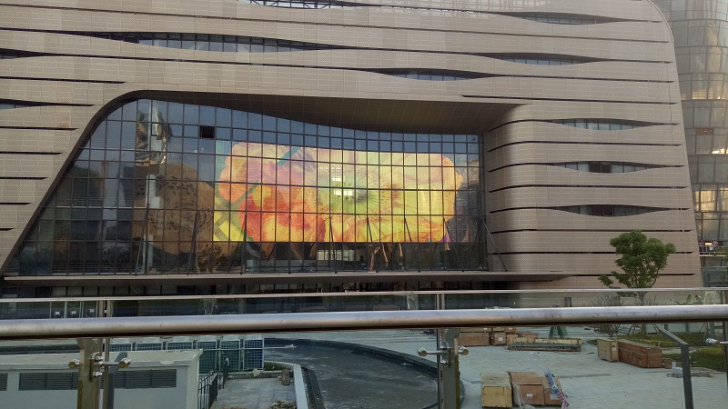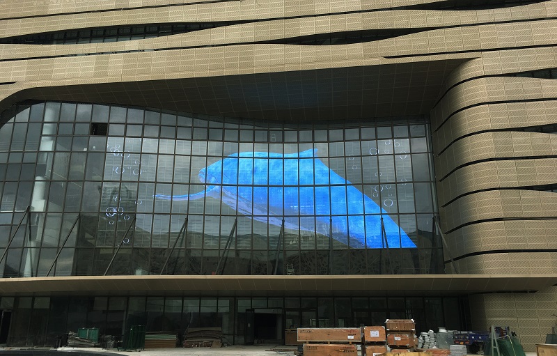 據(jù)了解,本次項(xiàng)目運(yùn)用迷你P16系列透明屏,迷你透明屏融合了輕、薄、透的結(jié)構(gòu)設(shè)計(jì)理念,顛覆了傳統(tǒng)顯示屏復(fù)雜的鋼架結(jié)構(gòu)。它能夠針對(duì)不同的環(huán)境使用要求,不破壞建筑原結(jié)構(gòu),呈現(xiàn)出不同的形狀,與劇院現(xiàn)場(chǎng)的玻璃幕墻完美融合,無縫拼接,且屏體背部無任何結(jié)構(gòu),玻璃幕墻無需承重,安全系數(shù)極高。其通透的特性,不影響日常采光,隱形顯示,全方面觀看無死角,亮度可調(diào)節(jié),流光溢彩的顯示畫面結(jié)合音樂營(yíng)造了一種氣勢(shì)恢宏,具有現(xiàn)代科技感的震撼場(chǎng)面,賦予劇院建筑玻璃的靈動(dòng)生氣,為劇院增添了一道亮麗的風(fēng)景線。