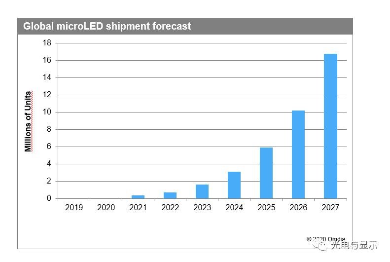 2027年MicroLED顯示器出貨量將升至1670萬(wàn)片