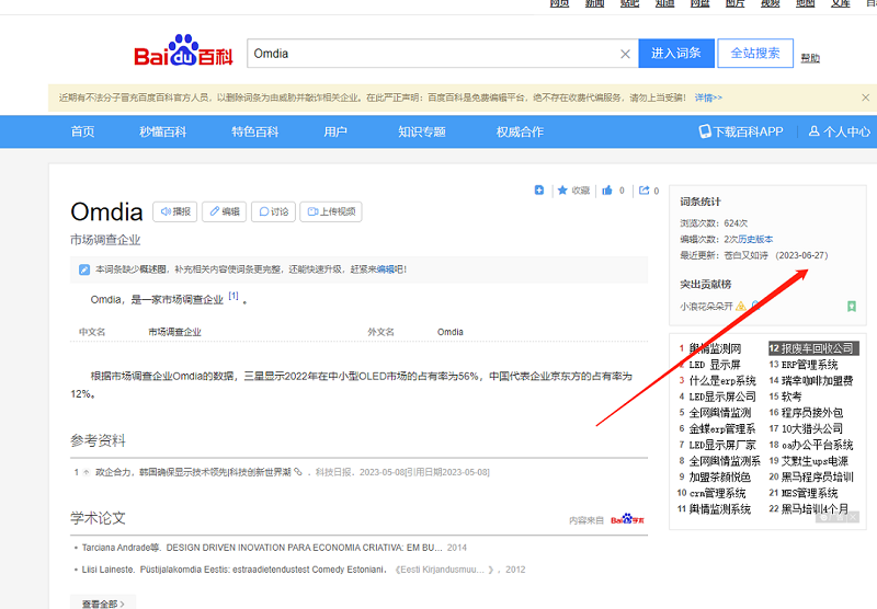其實太簡單,簡單的讓小編們覺得這不像百科,上面有三星,有京東方。那么小編們仔細一看更新日期為2023年6月23日,(真是及時雨6月的數(shù)據6月更新百科,真是現(xiàn)買現(xiàn)賣無庫存,如果及個別顯示屏品牌讓全國經銷商減少點擠壓庫存壓力就謝天謝地了)更新次數(shù)2次,難道是為了這次給予排名第一做鋪墊?