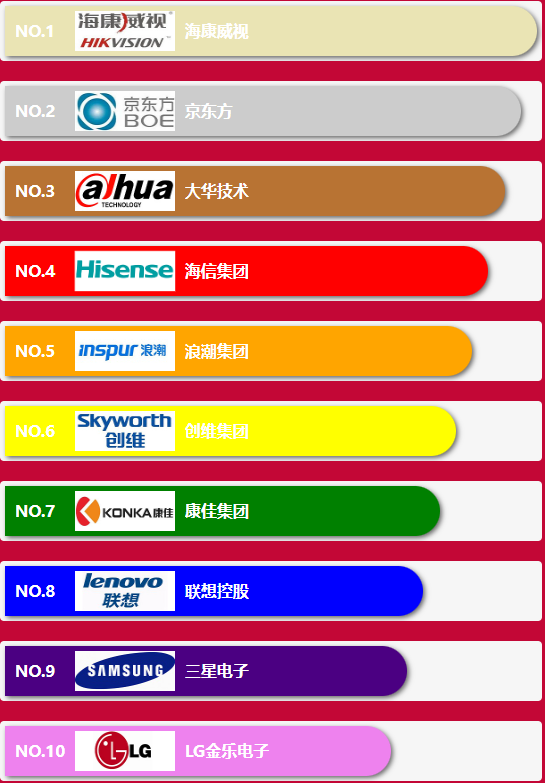 led顯示屏跨界入行十大品牌前10名企業(yè)分別為:??低?京東方,大華技術(shù),海信集團,浪潮集團,創(chuàng)維集團,康佳集團,聯(lián)想控股,三星電子,LG金樂電子,這些企業(yè)一般從事與