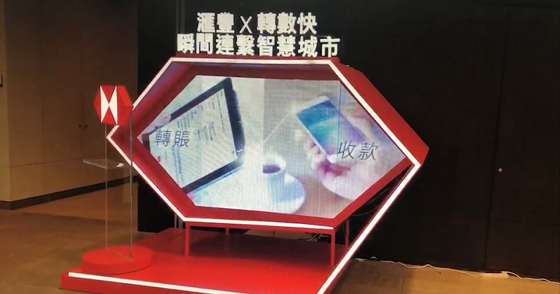近日,由迷你光電為香港匯豐銀行打造的多邊形無框