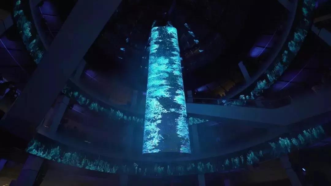 加泰羅尼亞最大的購物中心Diagonal Mar開幕秀,設(shè)計師利用樓宇圓頂設(shè)計和兩個LED環(huán)幕配合中心360°led屏幕,再加上3D全息投影及光束燈,打造出酷炫的海洋沉浸效果。