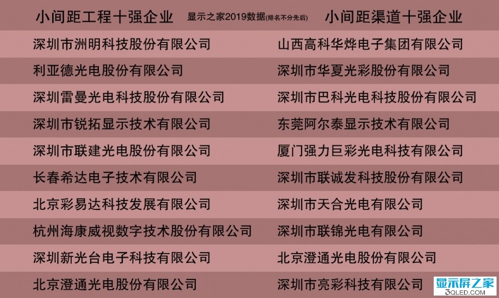 LED小間距顯示經(jīng)過近幾年的快速發(fā)展,各類企業(yè)定位及市場(chǎng)格局已初步形成,然競爭依然激烈。顯示之家調(diào)研了解,等企業(yè)依托其品牌效應(yīng)、渠道優(yōu)勢(shì)、較高的性價(jià)比及完善的配套已成為國產(chǎn)LED小間距顯示的龍頭企業(yè)。