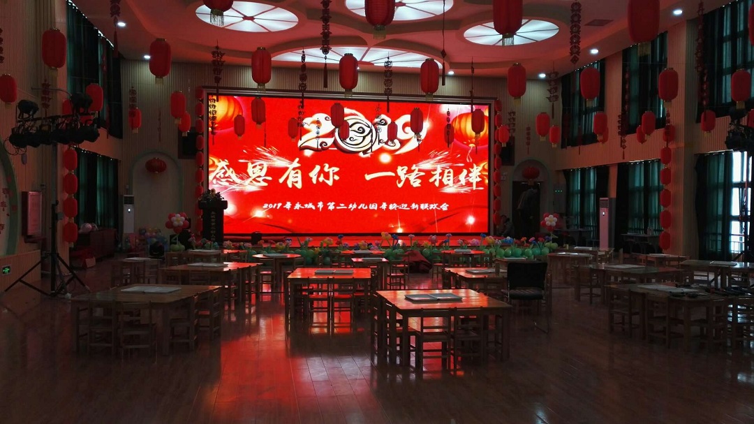 河南永城第二幼兒園室內(nèi)P3霧面燈全彩屏,由江蘇