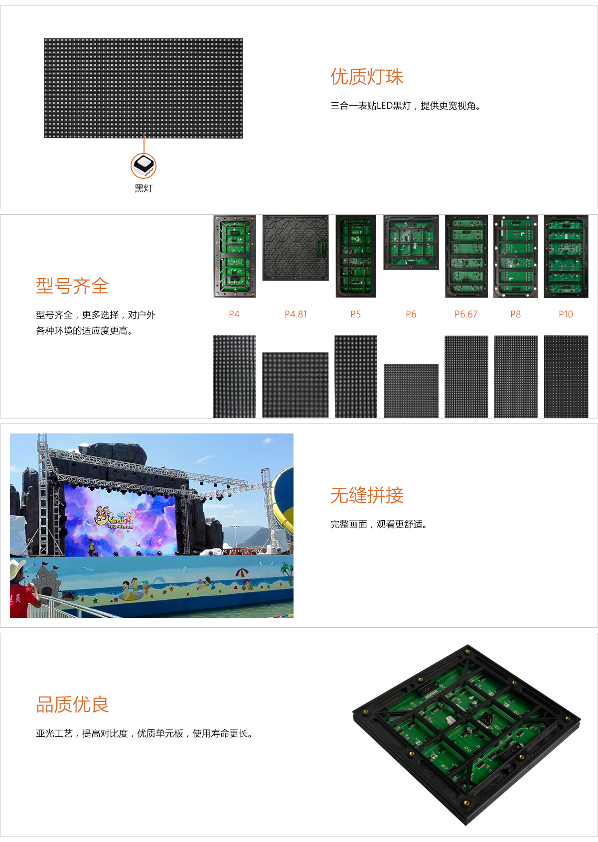 ★P10戶(hù)外全彩顯示屏材料到成品,研發(fā)到生產(chǎn)的全程可控性,成為產(chǎn)品質(zhì)量可靠性的保證