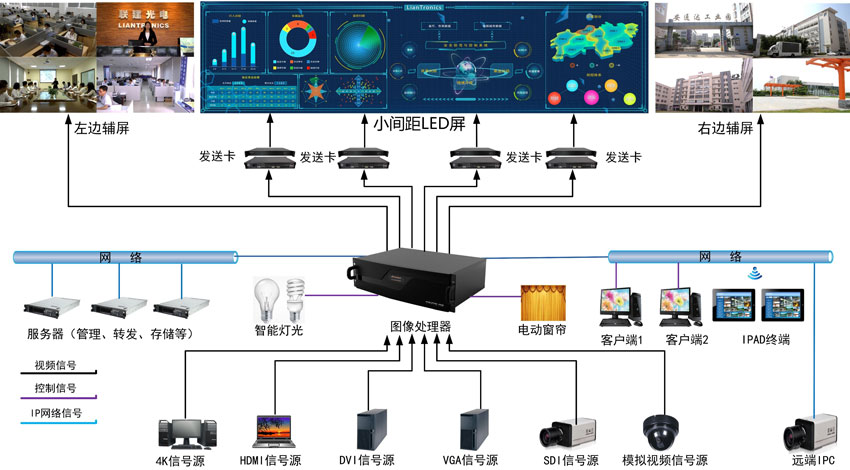 指揮調(diào)度系統(tǒng)是集通信、指揮、控制、信息于一體的復(fù)雜系統(tǒng),是保障公共安全和處置突發(fā)公共事件、重大事件、應(yīng)急管理的指揮調(diào)度場所,通過大屏顯示控制系統(tǒng),將大信息量、高數(shù)據(jù)流以及多路監(jiān)控靈活方便地展現(xiàn)在一個內(nèi)容豐富、準(zhǔn)確高效的綜合信息顯示界面,實(shí)現(xiàn)信息共享,便于統(tǒng)一指揮、調(diào)度,從而保證整個指揮系統(tǒng)具有聯(lián)動性、高效性、完整性。