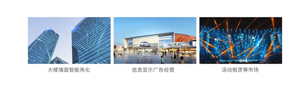 ② 解決了網(wǎng)格屏間距大、排線暴露、用膠不防水易老化,同時(shí)網(wǎng)格屏未點(diǎn)亮?xí)r,墻面不美觀;qmDLED顯示屏廠家|江蘇迷你光電有限公司